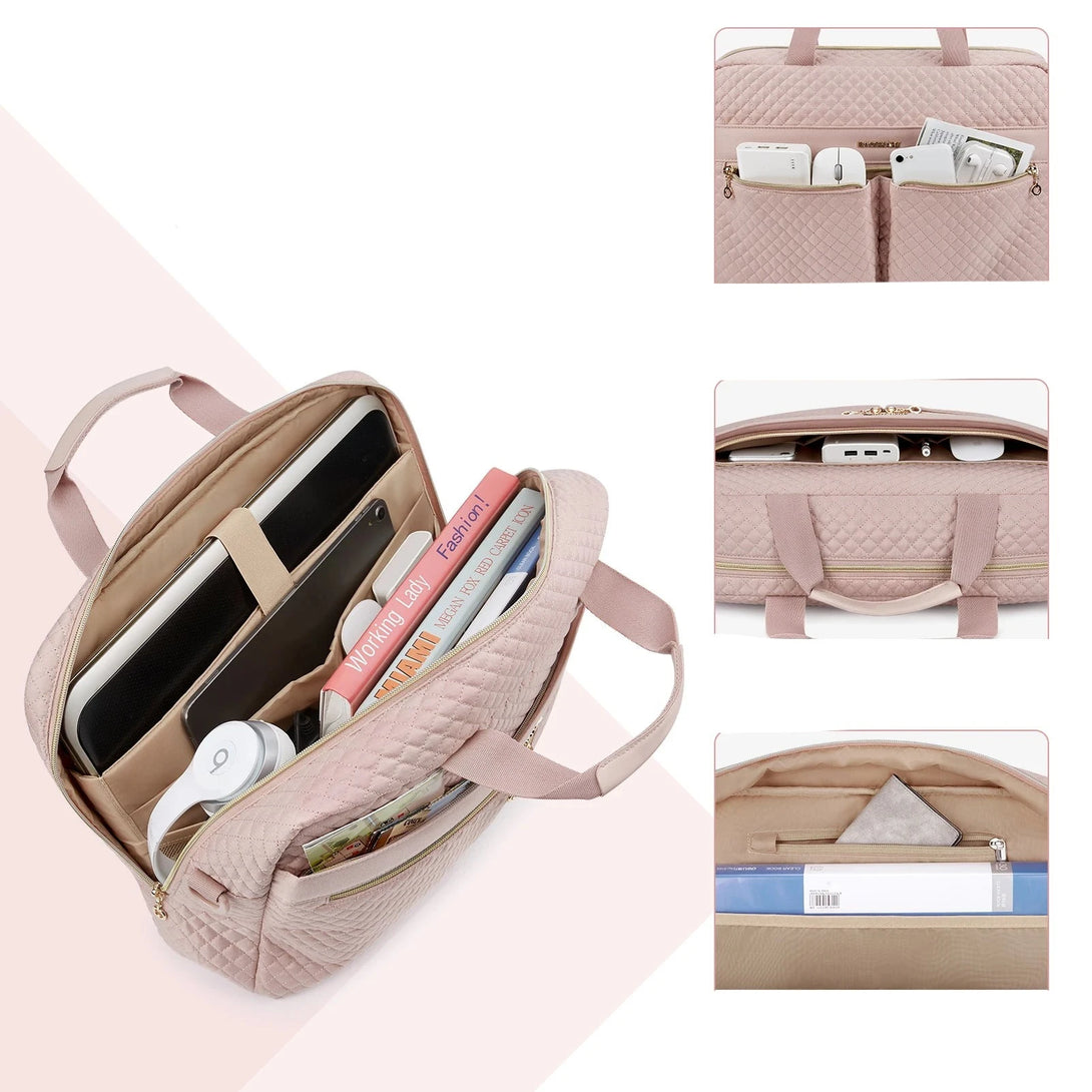 Ce sac à main pour ordinateur portable est conçu pour répondre à tous vos besoins de transport professionnel. Avec des dimensions de 15. 5l x 3. 5w x 11. 5h et un poids de seulement 1. 5 lbs, il est assez compact pour être glissé sous un siège d'avion. Il dispose de trois compartiments pour une organisation optimale: un grand compartiment technique pouvant accueillir des laptops jusqu'à 15. 6 pouces, y compris un macbook de 15 pouces, un ipad de 12. 9 pouces, et d'autres accessoires technologiques. Les deux poches frontales sont parfaites pour vos objets quotidiens et une grande poche de rangement permet de ranger vos stylos, livres et passeports de manière organisée.