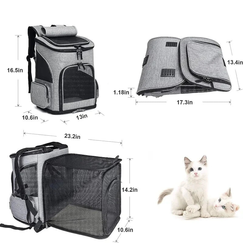 Ce sac à dos extensible pour animaux de compagnie est la solution idéale pour transporter vos chats et petits chiens lors de vos déplacements. Conçu pour offrir une grande capacité tout en restant portable, ce sac à dos est également pliable, ce qui facilite son rangement quand il n'est pas utilisé. Grâce à sa conception respirante, vos animaux de compagnie seront confortables et bien aérés. La fermeture éclair permet une utilisation facile et sécurisée. Que vous voyagiez en ville ou à la campagne, ce sac à dos vous garantit une expérience de transport sans tracas et agréable pour vos amis à quatre pattes.